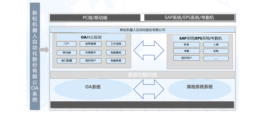 隨著新松信息化建設(shè)的不斷完善,多平臺的復(fù)雜操作以無法滿足當(dāng)前辦公的業(yè)務(wù)場景,需要一套系統(tǒng)能夠縮短辦公時長,提升辦公效率,既滿足對多平臺的數(shù)據(jù)進行整合對接,又包含高靈活度的開發(fā)空間,既滿足多個部門的當(dāng)前辦公業(yè)務(wù)場景,又滿足新松后續(xù)發(fā)展的業(yè)務(wù)拓展,故引進OA系統(tǒng),實現(xiàn)“單一系統(tǒng),多元化辦公”的目標(biāo)。
