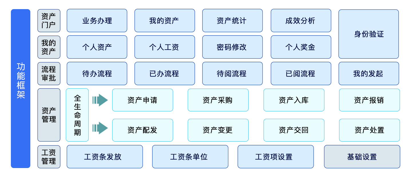 支持發(fā)起資產(chǎn)需求、配發(fā)、采購、報銷、交回、變更、處置流程。