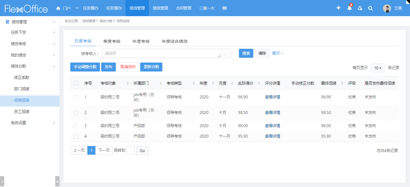 考核關(guān)系制定、考核任務(wù)下發(fā)、總結(jié)任務(wù)下發(fā)、任務(wù)執(zhí)行、成績?cè)u(píng)分的所有環(huán)節(jié),實(shí)現(xiàn)真正的績效全過程線上管理;