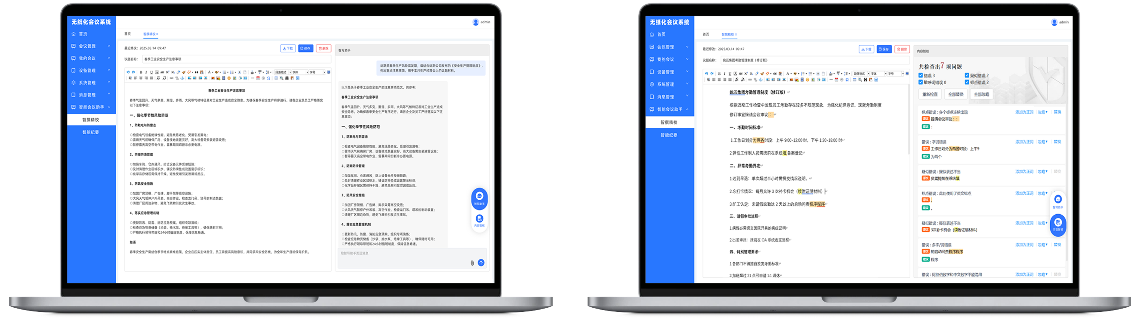 與DeepSeek、萬相大模型深度對接,支持DeepSeek的私有化部署,智能生成議題材料,并進(jìn)行全方位的校核。實(shí)現(xiàn)會議速錄,會場發(fā)言邊說邊轉(zhuǎn)寫,形成完整會議文稿。會議紀(jì)要智能生成,快速提煉觀點(diǎn),輔助會議決策。
