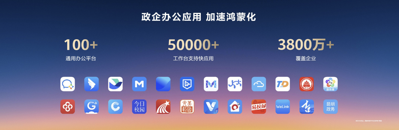 鴻蒙正在加速推進政企辦公領域的生態(tài)布局,目前,適配鴻蒙的通用辦公平臺已超過100家,工作臺支持快應用數量已突破5萬個,覆蓋企業(yè)超3800萬家。包括evoPortal7在內的眾多通用辦公應用的加入,標志著鴻蒙在安全、互聯、智能等方面的創(chuàng)新能力獲得充分認可,讓更多政企組織通過“鴻蒙式辦公”實現安全保障、辦公效率的同步躍升,為政企組織的數字化轉型注入新動能。