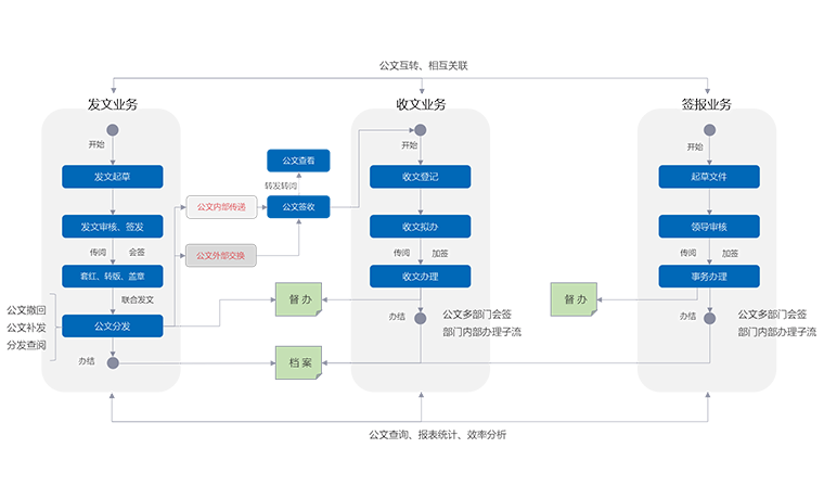全生命周期公文管理,致力于提升政令傳達效率。收發(fā)文互轉(zhuǎn)和上下級貫通,保障組織全面協(xié)同,同時與日程、督辦和會務進行業(yè)務掛接,從業(yè)務上實現(xiàn)全面協(xié)同。