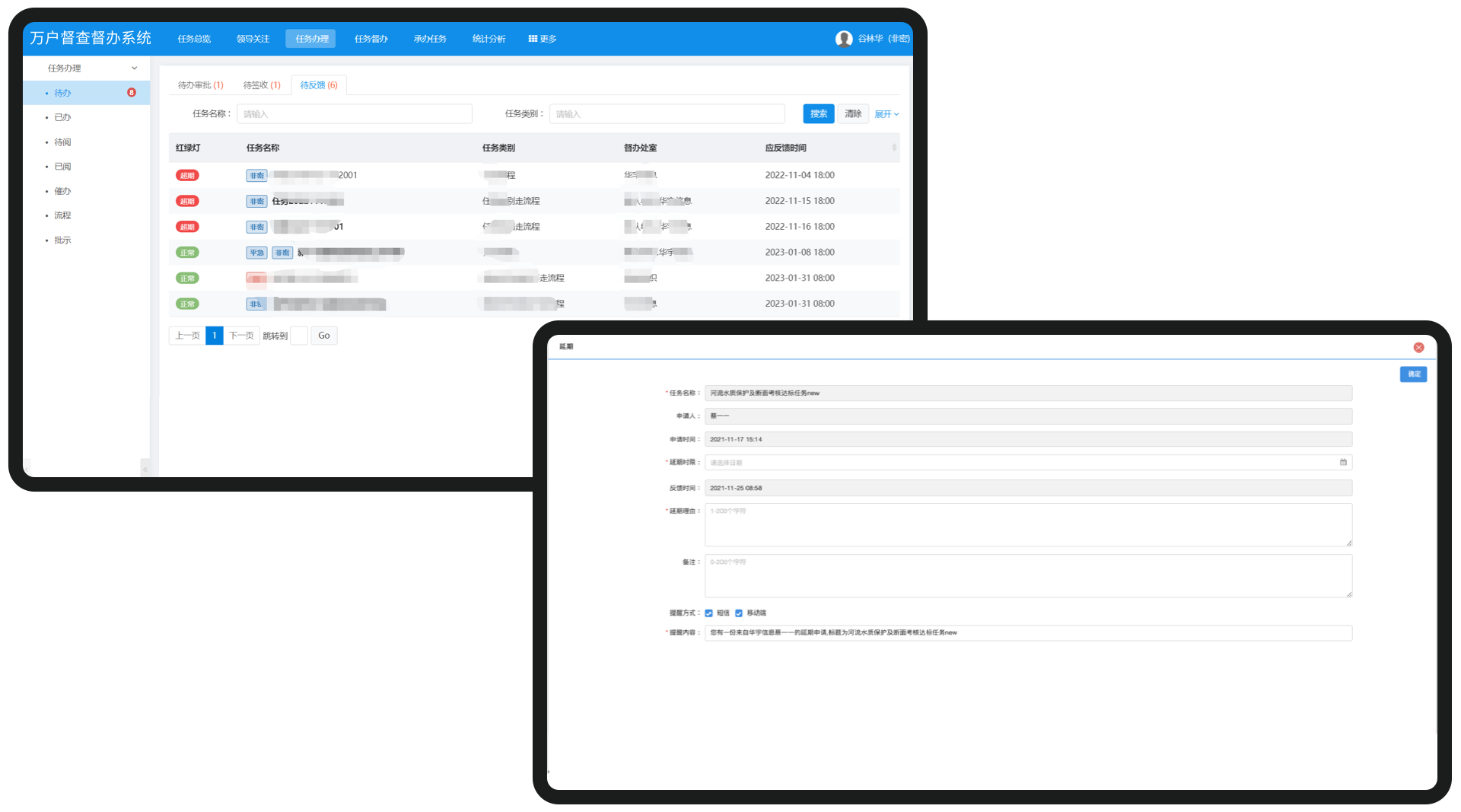任務(wù)詳情、任務(wù)辦理情況、反饋情況、延期情況、批示情況等信息,一頁滾動展示